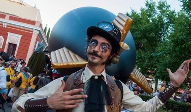 Pasacalles retrofuturista, donde la estética de mediados del siglo XIX se mezcla con la ciencia ficción y el futurismo.